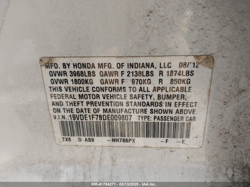 Color WhiteCylinders 4Drive Front wheel driveVIN 19VDE1F78DE******State Run & Drive VerifiedDamage Front or back AutoRIA