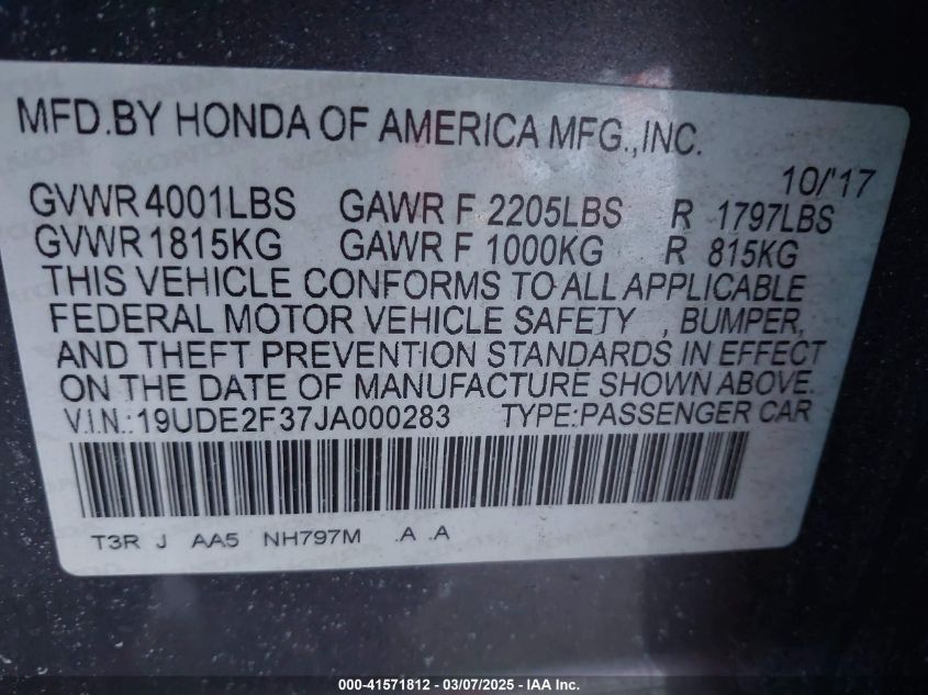 Color GrayCylinders 4Drive Front wheel driveVIN 19UDE2F37JA******State Run & Drive VerifiedDamage Front leftAuction date 2025-03-26 AutoRIA