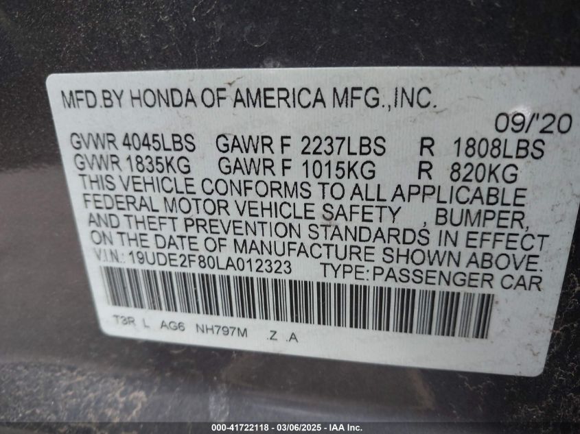 Color GrayCylinders 4Drive Front wheel driveVIN 19UDE2F80LA******State Run & Drive VerifiedDamage BackAuction date 2025-03-25 AutoRIA