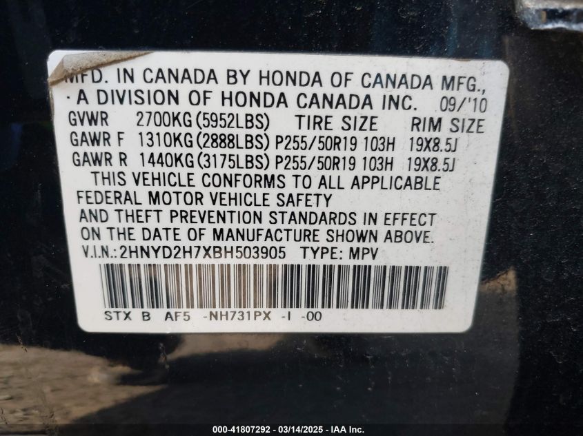 Color BlackCylinders 6Drive Full driveVIN 2HNYD2H7XBH******State Run & Drive VerifiedDamage Front or backAuction date 2025-03-20 AutoRIA