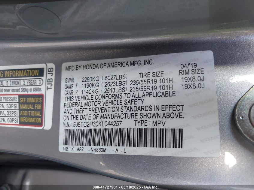 2019 ACURA RDX 2019 Gasoline, 2.0, Full drive, VIN - 5J8TC2H30KL****** from the USA