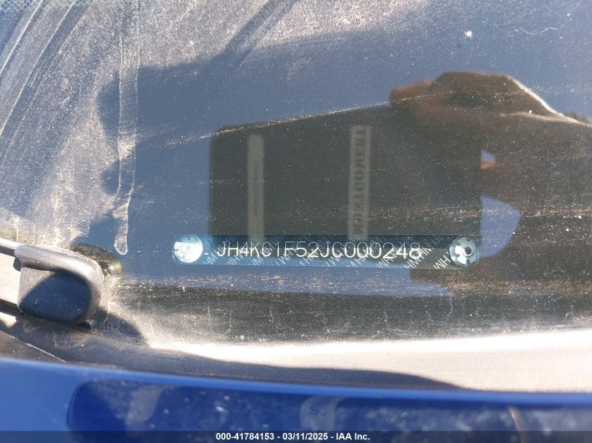 Color BlueCylinders 6Drive Front wheel driveVIN JH4KC1F52JC******State Run & Drive VerifiedDamage Front or backAuction date 2025-03-25 AutoRIA