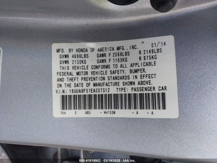 Color SilverCylinders 6Drive Front wheel driveVIN 19UUA8F51EA******State Run & Drive VerifiedDamage Rear left