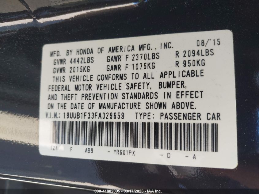 Color BrownCylinders 4Drive Front wheel driveVIN 19UUB1F33FA******State Run & Drive VerifiedDamage Rear left AutoRIA