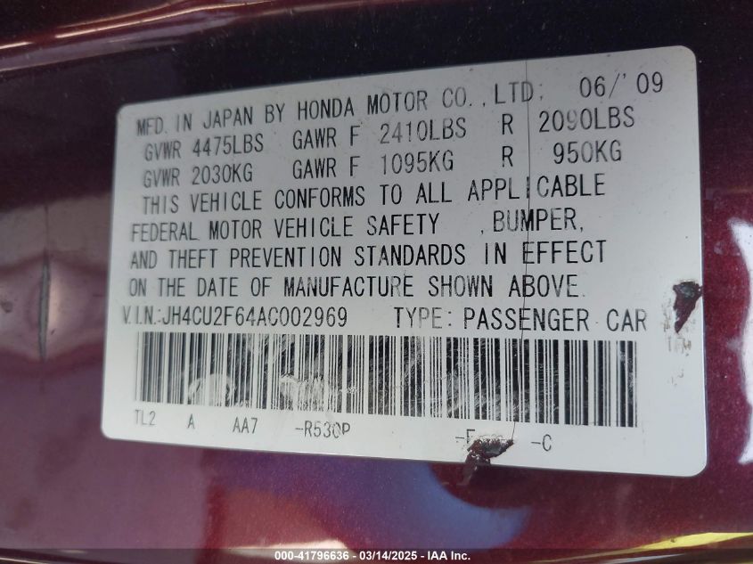 Color BurgundyCylinders 4Drive Front wheel driveVIN JH4CU2F64AC******State Run & Drive VerifiedDamage Front or backAuction date 2025-03-21 AutoRIA
