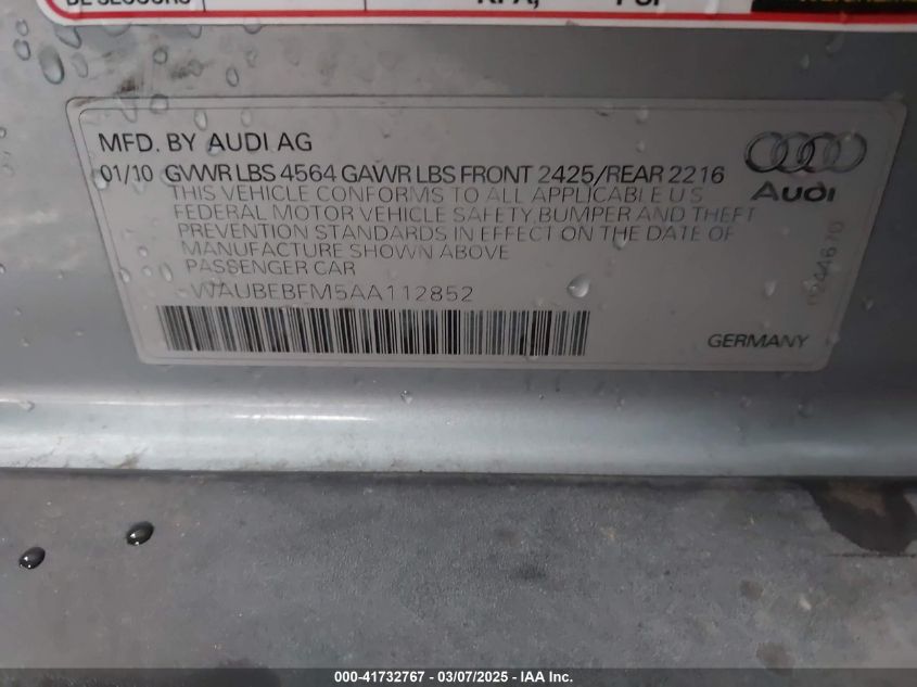 2010 AUDI A3 2010 Gasoline, 2.0, Front wheel drive, VIN - WAUBEBFM5AA****** from the USA