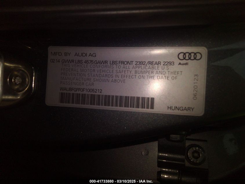 2015 AUDI A3 2015 Gasoline, 2.0, Full drive, VIN - WAUBFGFF0F1****** from the USA