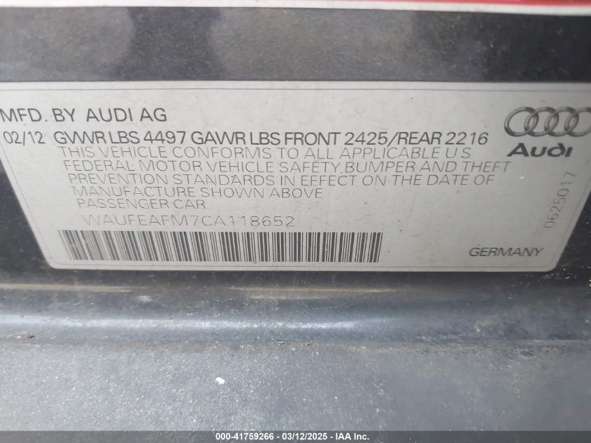 2012 AUDI A3 2012 Gasoline, 2.0, Front wheel drive, VIN - WAUFEAFM7CA****** from the USA