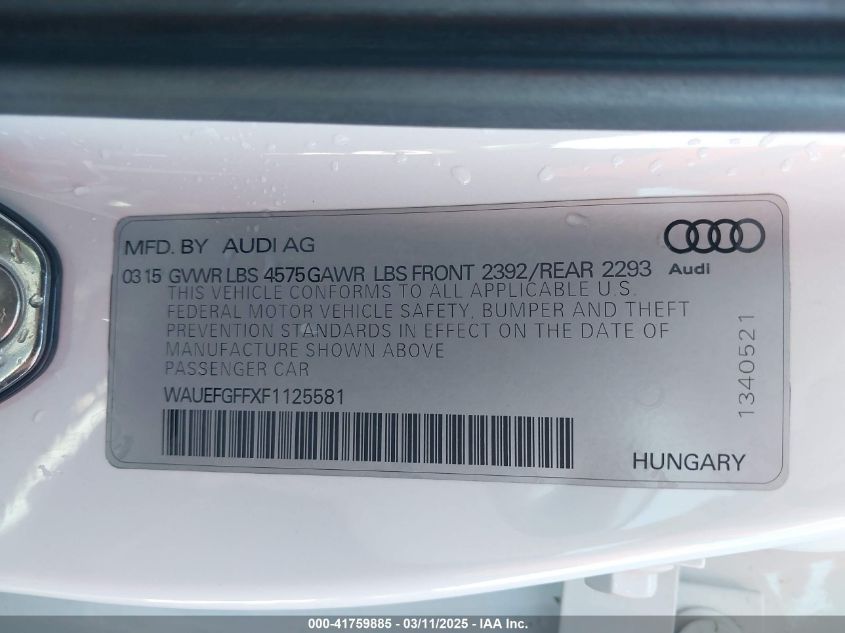 2015 AUDI A3 2015 Gasoline, 2.0, Full drive, VIN - WAUEFGFFXF1****** from the USA