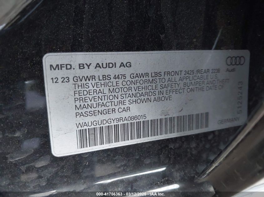 Color BlackCylinders 4Drive Full driveVIN WAUGUDGY9RA******State Run & Drive VerifiedDamage Right side