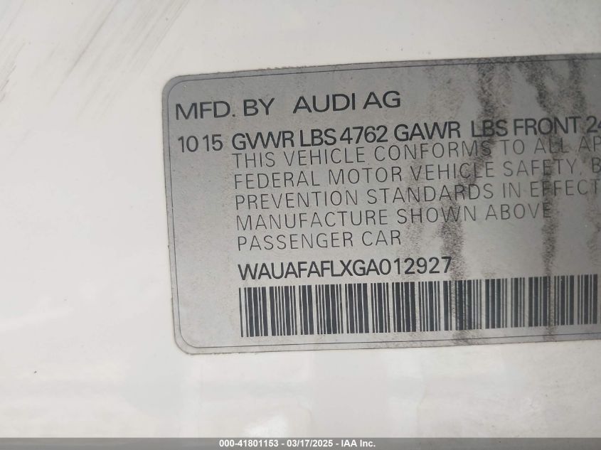 2016 AUDI A4 2016 Gasoline, 2.0, Front wheel drive, VIN - WAUAFAFLXGA****** from the USA