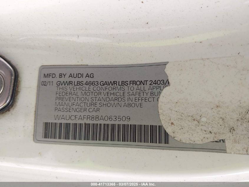Color WhiteCylinders 4Drive Full driveVIN WAUCFAFR8BA******State Run & Drive VerifiedDamage InsignificantAuction date 2025-03-26 AutoRIA