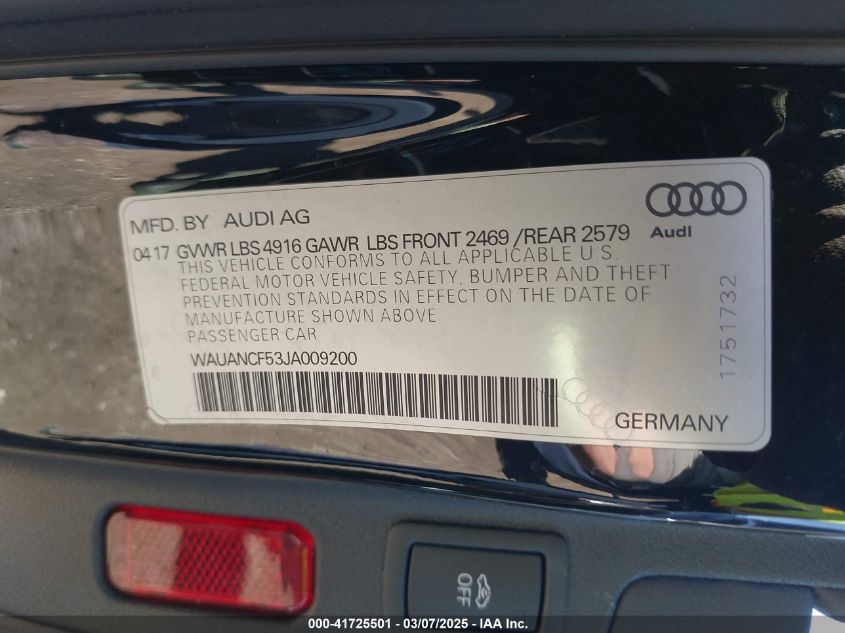 Color BlackCylinders 4Drive Full driveVIN WAUANCF53JA******State Run & Drive VerifiedDamage Front leftAuction date 2025-03-26 AutoRIA
