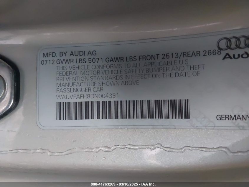 Color BeigeCylinders 4Drive Full driveVIN WAUVFAFH8DN******State Run & Drive VerifiedDamage InsignificantAuction date 2025-03-26 AutoRIA