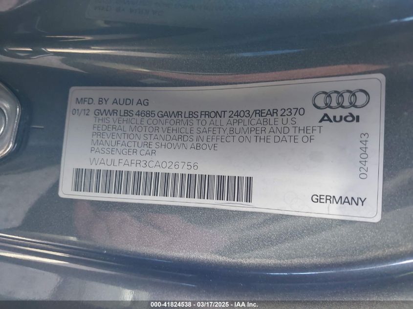 2012 AUDI A5 2012 Gasoline, 2.0, Full drive, VIN - WAULFAFR3CA****** from the USA