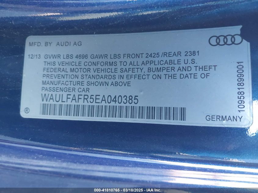 Color BlueCylinders 4Drive Full driveVIN WAULFAFR5EA******State Run & Drive VerifiedDamage Front or back AutoRIA