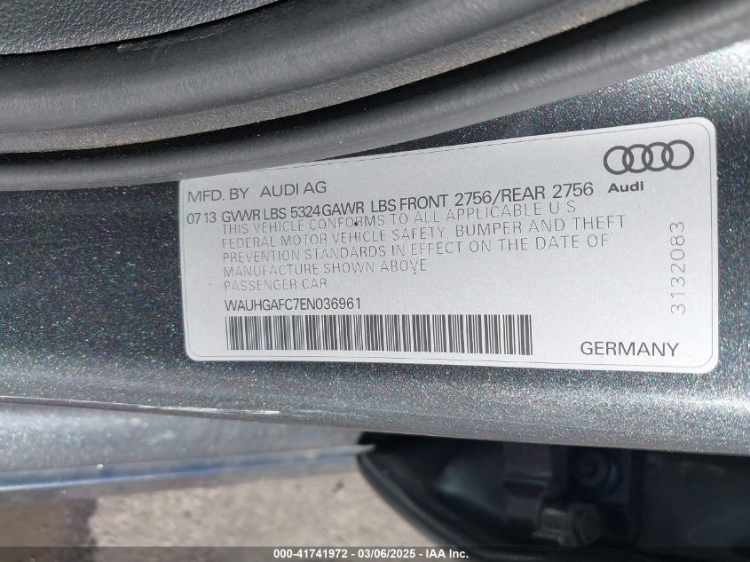 Color GrayCylinders 6Drive Full driveVIN WAUHGAFC7EN******State Run & Drive VerifiedDamage VandalismAuction date 2025-03-24 AutoRIA
