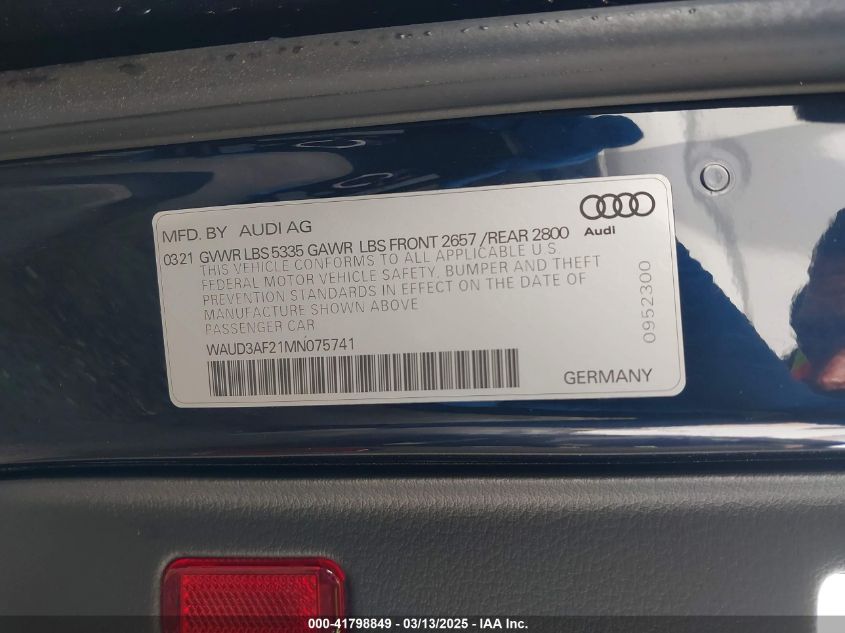 2021 AUDI A6 2021 Gasoline, 2.0, Full drive, VIN - WAUD3AF21MN****** from the USA