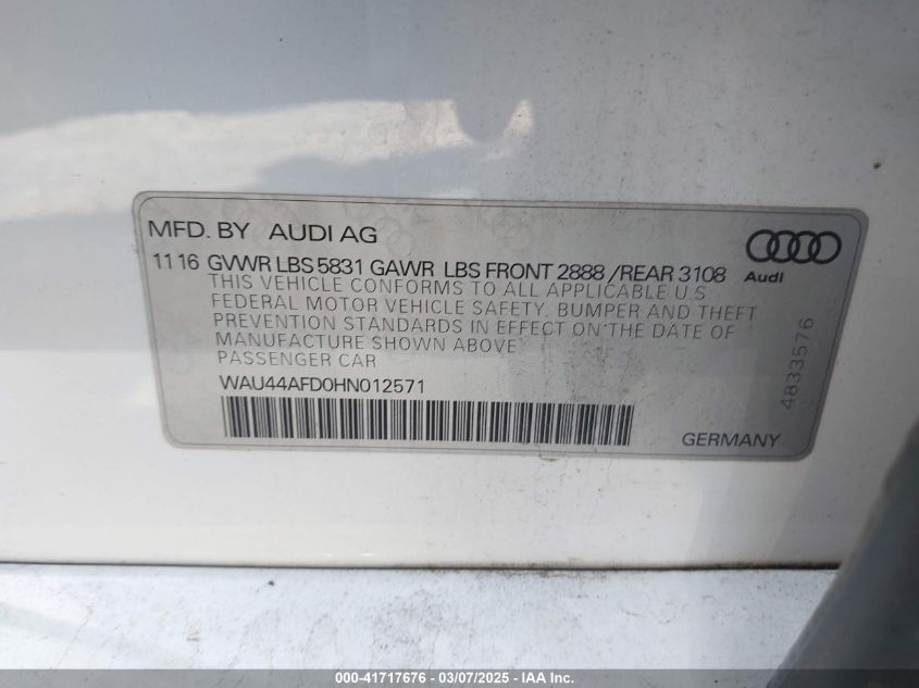 2017 AUDI A8 2017 Gasoline, 3.0, Full drive, VIN - WAU44AFD0HN****** from the USA