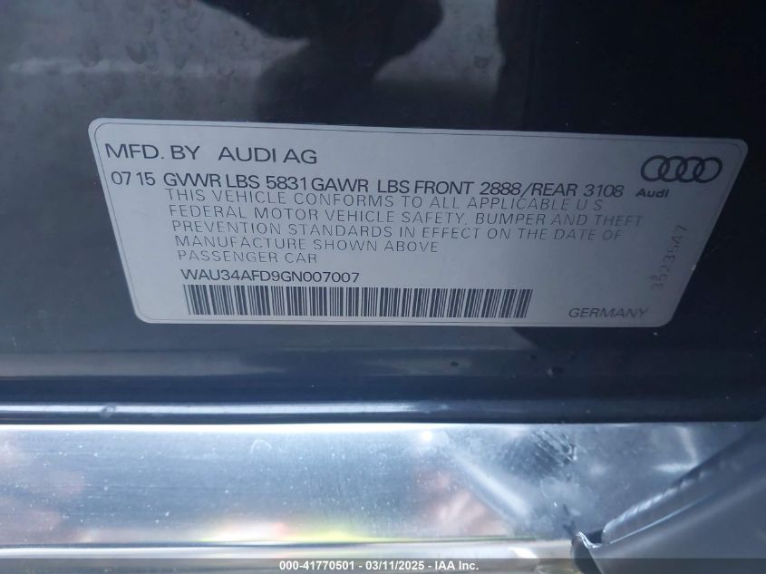 2016 AUDI A8 2016 Gasoline, 3.0, Full drive, VIN - WAU34AFD9GN****** from the USA
