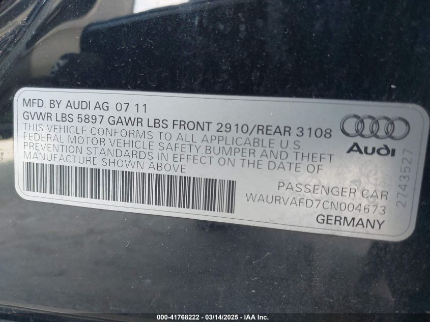 2012 AUDI A8 2012 Gasoline, 4.2, Full drive, VIN - WAURVAFD7CN****** from the USA