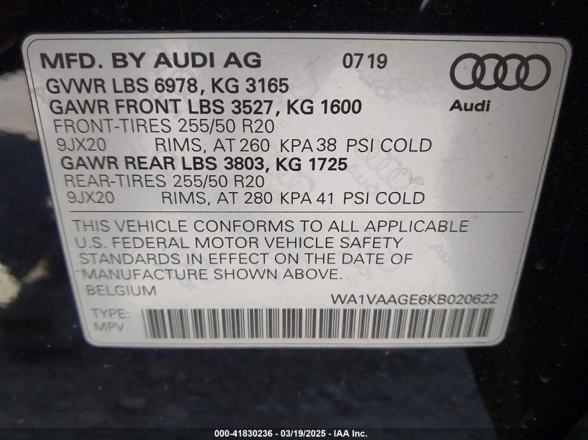 Color BlackDrive Full driveVIN WA1VAAGE6KB******State Run & Drive VerifiedDamage Left side AutoRIA