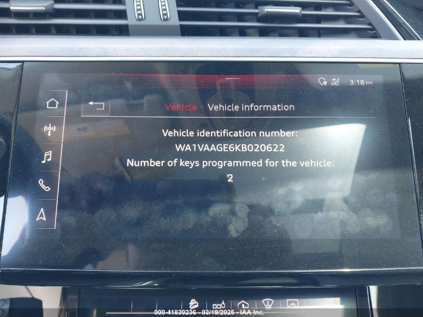 2019 AUDI E-TRON 2019 Electric, U, Full drive, VIN - WA1VAAGE6KB****** from the USA
