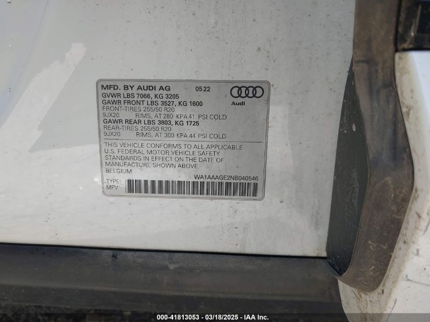 2022 AUDI E-TRON 2022 Electric, , Full drive, VIN - WA1AAAGE2NB****** from the USA