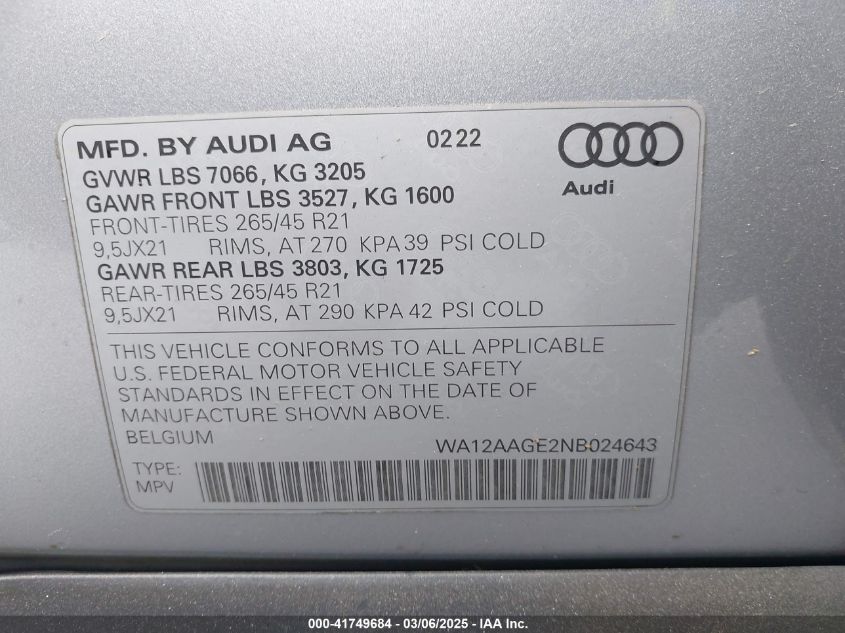 2022 AUDI E-TRON SPORTBACK 2022 Electric, , Full drive, VIN - WA12AAGE2NB****** from the USA