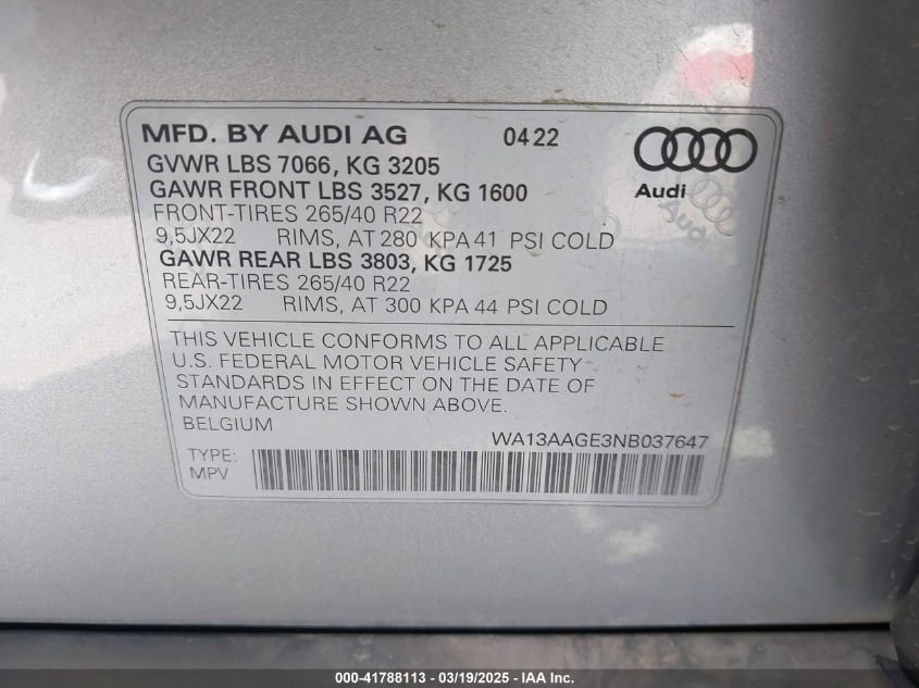 2022 AUDI E-TRON SPORTBACK 2022 Electric, , Full drive, VIN - WA13AAGE3NB****** from the USA
