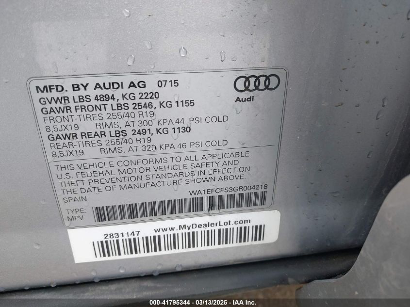 2016 AUDI Q3 2016 Gasoline, 2.0, Full drive, VIN - WA1EFCFS3GR****** from the USA