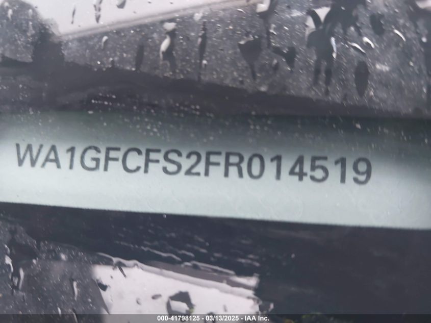 Color GrayCylinders 4Drive Full driveVIN WA1GFCFS2FR******State Run & Drive VerifiedDamage Rear leftAuction date 2025-03-26 AutoRIA