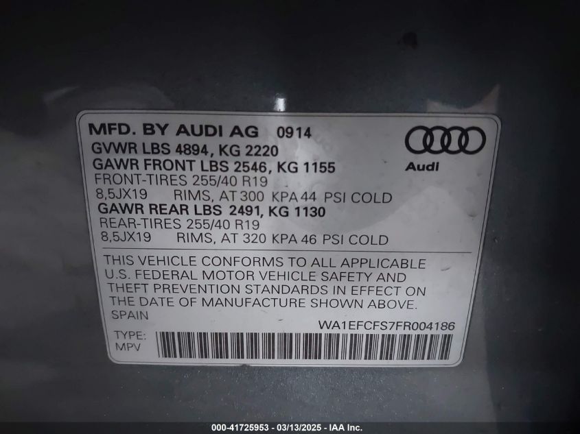2015 AUDI Q3 2015 Gasoline, 2.0, Full drive, VIN - WA1EFCFS7FR****** from the USA