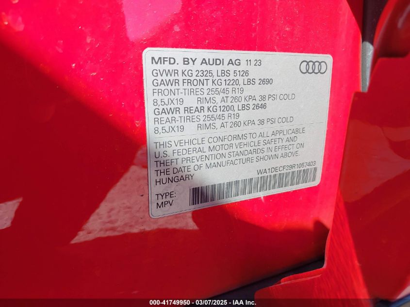 2024 AUDI Q3 2024 Gasoline, 2.0, Full drive, VIN - WA1DECF39R1****** from the USA