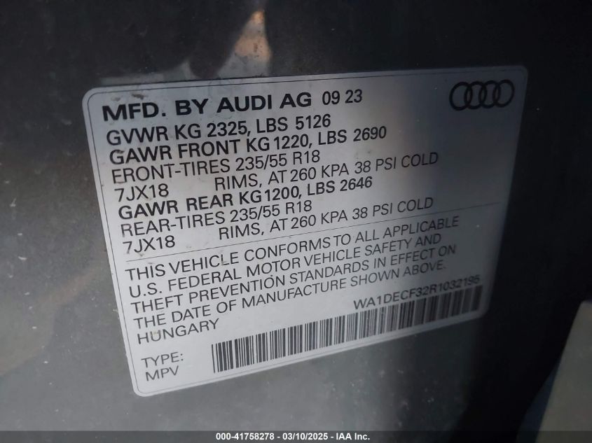 2024 AUDI Q3 2024 Gasoline, 2.0, Full drive, VIN - WA1DECF32R1****** from the USA