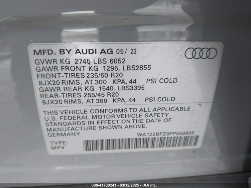 2023 AUDI Q4 SPORTBACK E-TRON 2023 Electric, , Full drive, VIN - WA122BFZ9PP****** from the USA