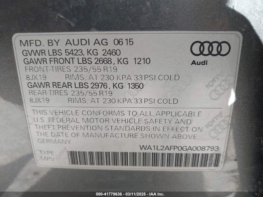Color GrayCylinders 4Drive Full driveVIN WA1L2AFP0GA******State Run & Drive VerifiedDamage Front or back AutoRIA