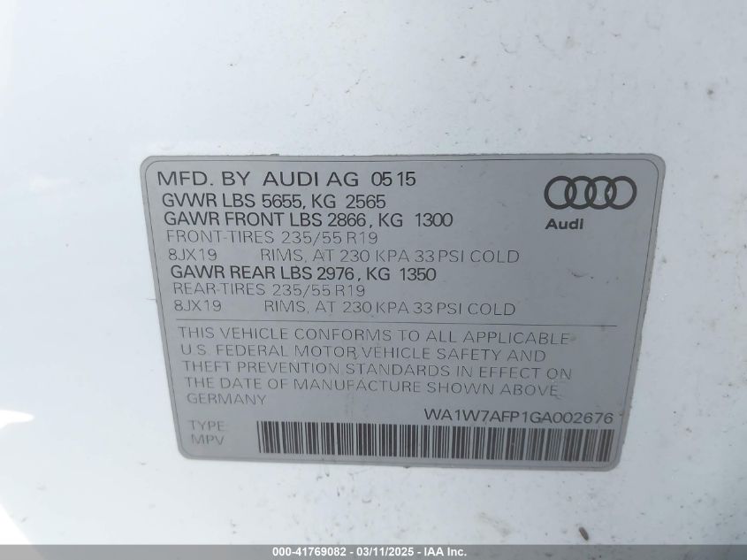 Color WhiteCylinders 6Drive Full driveVIN WA1W7AFP1GA******State Run & Drive VerifiedDamage Front or back AutoRIA