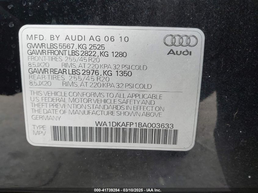 2011 AUDI Q5 2011 Gasoline, 3.2, Full drive, VIN - WA1DKAFP1BA****** from the USA