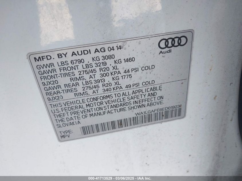 Color WhiteCylinders 6Drive Full driveVIN WA1LGAFE8ED******State Run & Drive VerifiedDamage Front and back AutoRIA