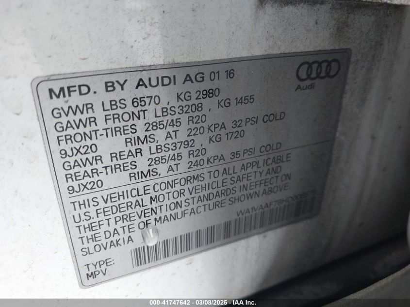 2017 AUDI Q7 2017 Gasoline, 3.0, Full drive, VIN - WA1VAAF78HD****** from the USA