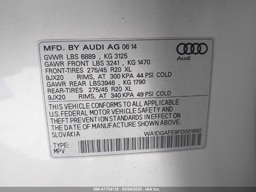 Color SilverCylinders 6Drive Full driveVIN WA1DGAFE9FD******State Run & Drive VerifiedDamage BackAuction date 2025-03-25 AutoRIA