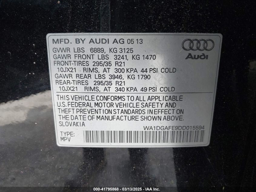 Color BlackCylinders 6Drive Full driveVIN WA1DGAFE9DD******State Run & Drive VerifiedDamage Rear rightAuction date 2025-03-26 AutoRIA