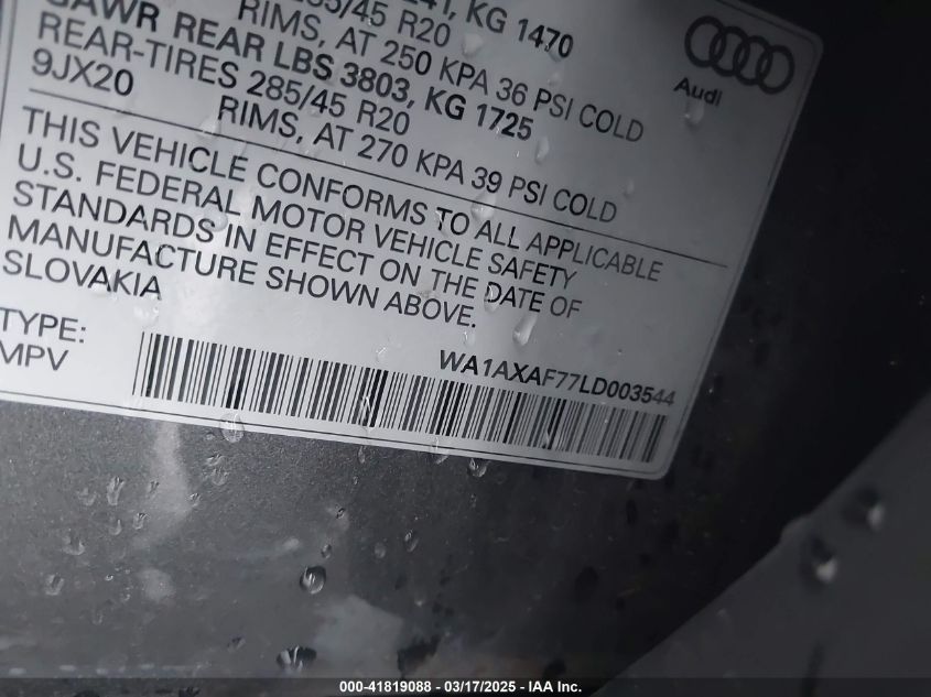 2020 AUDI Q7 2020 Gasoline, 3.0, Full drive, VIN - WA1AXAF77LD****** from the USA