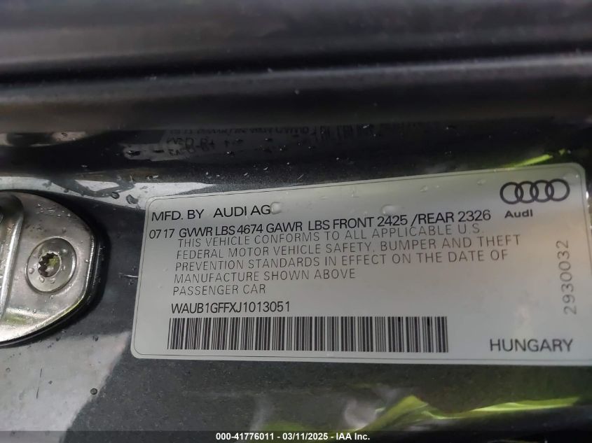 2018 AUDI S3 2018 Gasoline, 2.0, Full drive, VIN - WAUB1GFFXJ1****** from the USA