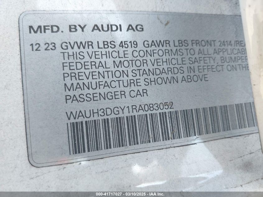 2024 AUDI S3 2024 Gasoline, 2.0, Full drive, VIN - WAUH3DGY1RA****** from the USA