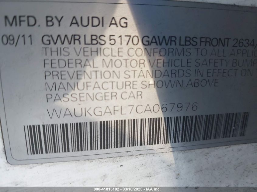 Color WhiteCylinders 6Drive Full driveVIN WAUKGAFL7CA******State Run & Drive VerifiedDamage Front right AutoRIA