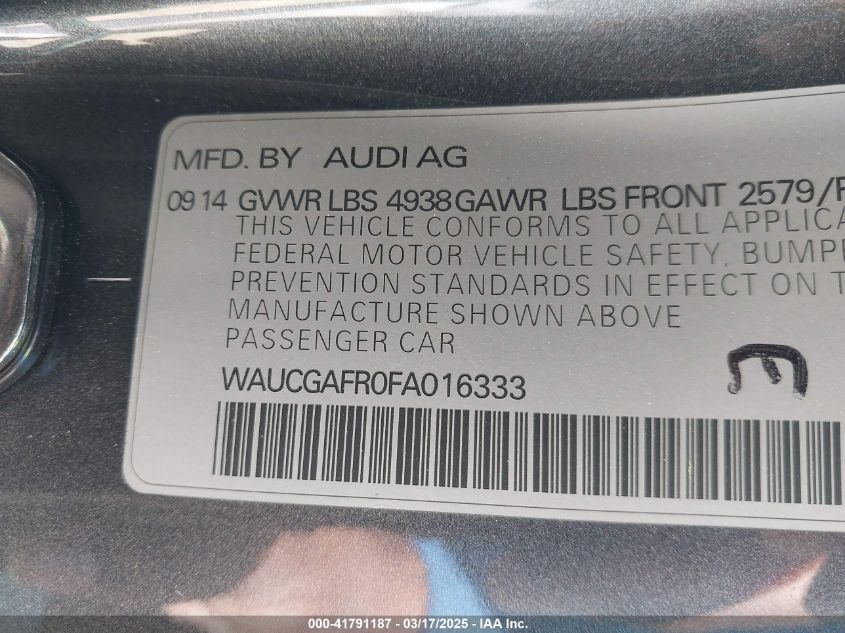 2015 AUDI S5 2015 Gasoline, 3.0, Full drive, VIN - WAUCGAFR0FA****** from the USA