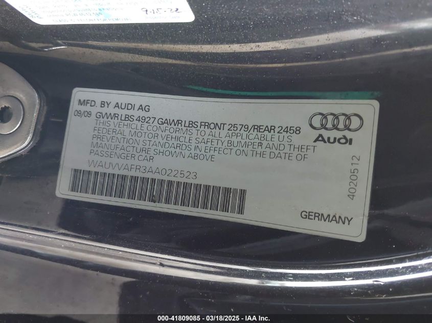 2010 AUDI S5 2010 Gasoline, 4.2, Full drive, VIN - WAUVVAFR3AA****** from the USA