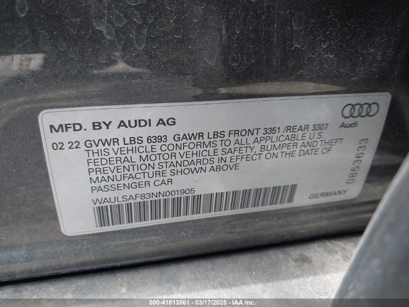 2022 AUDI S8 2022 Gasoline, 4.0, Full drive, VIN - WAULSAF83NN****** from the USA